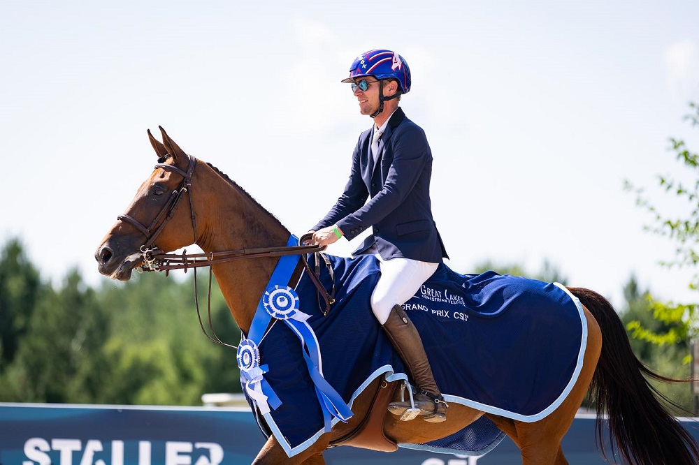 Traverse City, Michigan, USA – July 30, 2023 – Karl Cook (USA), time after time, proves that it’s never over until it’s over. He did it again Sunday with Caracole de La Roque, a newer ride of his owned by Signe Otsby, stunning the crowd with a blazing-fast jump-off to win the $145,100 Grand Prix of Traverse City CSI 3*.