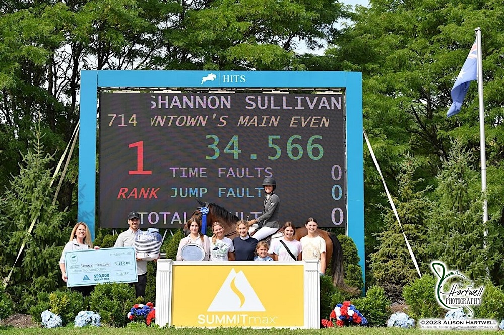 Wayne, Illinois, USA – August 13, 2023 – The Lamplight Equifest Series came to a close on Sunday at HITS Chicago, but riders were aiming for the top of the podium as the summer season winds down. Speedy efforts were made in the Douglas Elliman Grand Prix Stadium for the victory in Sunday’s $50,000 SummitMax Grand Prix. Shannon Sullivan (uUSA) and Downtown’s Main Event were too fast to be caught during the jump-off, crossing the timers with all the rails intact and clocking in at an impressive 34.57 seconds. Following right behind Sullivan was Tiffany Hammock (USA) with her mount, Ghana FS Z, who claimed second with a double clear and a jump-off time of 35.18 seconds. Rounding out the top three in this very competitive class was Friday’s Grand Prix winner, Caelinn Leahy (USA) and her veteran partner, the Gray Man. The duo was fault-free with a jump-off time of 35.21 seconds.