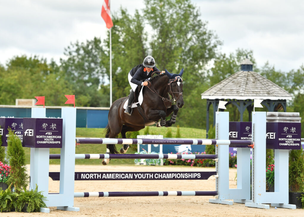 Traverse City, Michigan, USA – August 10, 2023 – The Children’s and Pre-Junior categories of the Gotham North FEI North American Youth Jumping Championships, presented by USHJA, concluded Saturday with gold medals being awarded to Hailey Guidry (USA) and Lauren Frandson, (USA) both of whom jumped five clear rounds without a single rail down all week.