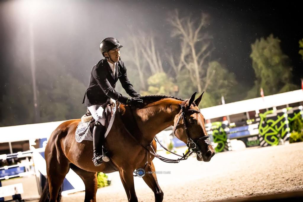 Toulayna, a 9-year-old Zangersheide mare (Toulon x Parco), owned by Farrington and Rabbit Root Stables, didn’t show her inexperience with the atmosphere that defines a nighttime competition and stole the show by nearly two seconds in a 10-horse jump-off.