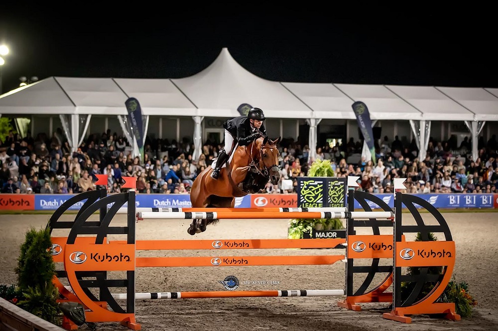 Toronto, Canada – August 19, 2023 – The third leg of Major League Show Jumping came to a close at Angelstone in Ontario, CAN, on Saturday night with a benchmark win for U.S. Olympic team silver medalist Kent Farrington in the $250,000 Kubota Grand Prix CSI 5*. He piloted Toulayna, a 9-year-old Zangersheide mare (Toulon x Parco) that he owns together with Rabbit Root Stables, to her first 5* grand prix victory in front of an electric crowd.