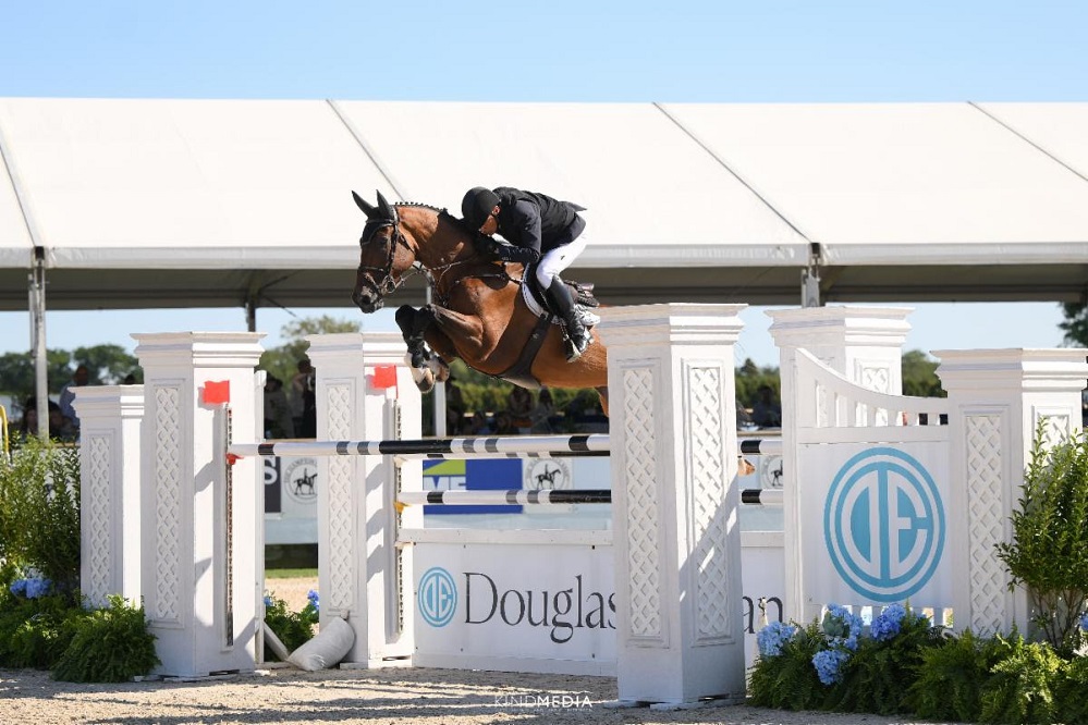 Bridgehampton, New York, USA – September 01, 2023 – Americans swept the podium in Friday’s $78,000 Douglas Elliman Grand Prix Qualifier presented by Longines CSI 5* at the Hampton Classic Horse Show, which saw only six clear rounds from a field of 45 entries representing 14 nations. Of the three riders who returned over the shortened jump-off track, Jimmy Torano (USA) led the way with his winning time of 41.99 seconds aboard Chewbacca HCC.
