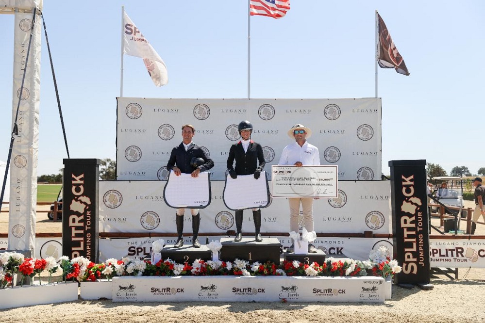 Paso Robles, California, USA – September 10, 2023 – The Lugano Diamonds Split Rock Jumping Tour (SRJT) capped off its week in Paso Robles, California with the $100,000 Lugano Diamonds Grand Prix CSI 2*. After a six-horse jump-off, Karrie Rufer (USA) and Stern dei Folletti (Toulon x Berlin), owned by Morning Star Sporthorses, emerged on top upon navigating Anderson Lima’s (BRA) first and second round tracks without fault. This win marks Rufer’s second grand prix victory on this year’s tour after taking the win in the $75,000 Lugano Diamonds National Grand Prix at Split Rock Portland 1.