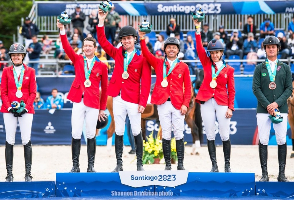 Santiago, Chile – November 02, 2023 – The U.S. Jumping Team completed its mission on Wednesday at the 2023 Pan-American Games in Santiago, earning their long-awaited qualification for the Paris 2024 Olympic Games and securing team gold with a final team total of 12.37. Canada finished with team silver on 17.62, and Brazil in third on 20.32. The final round of individual competition will begin at 11:00 a.m. GMT-3/10:00 a.m. ET on Friday, November 3, with two final rounds determining individual medals to close out equestrian competition for the 2023 Pan American Games.