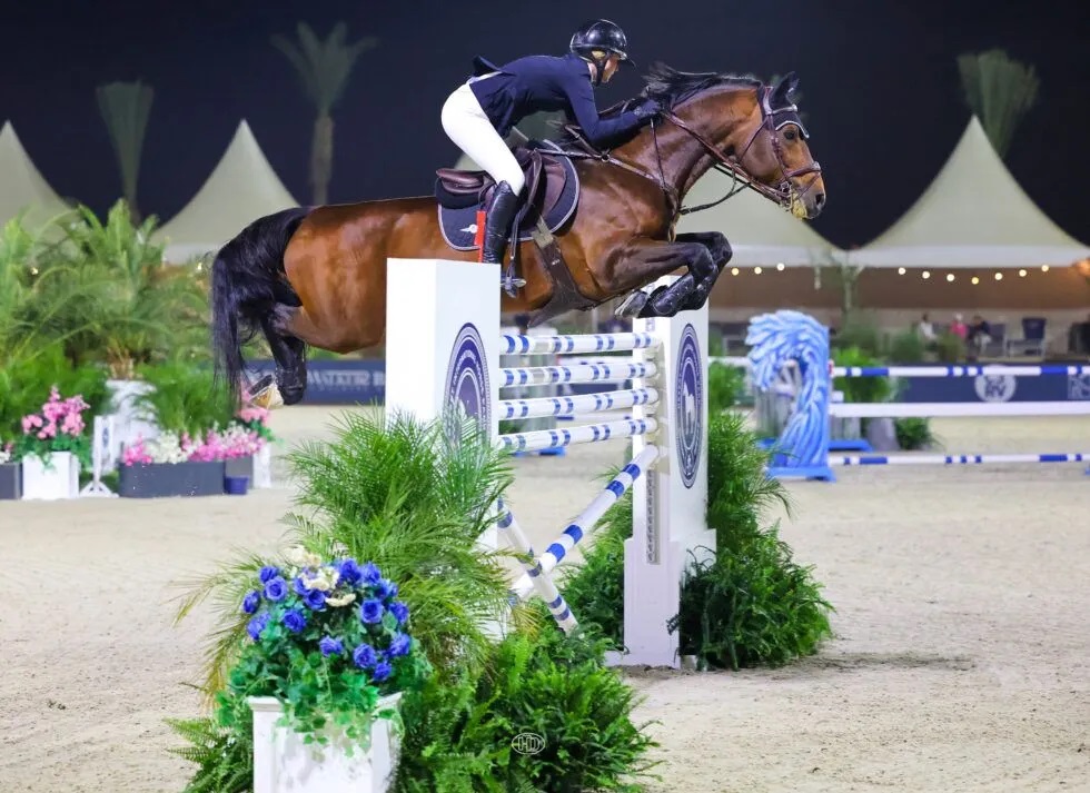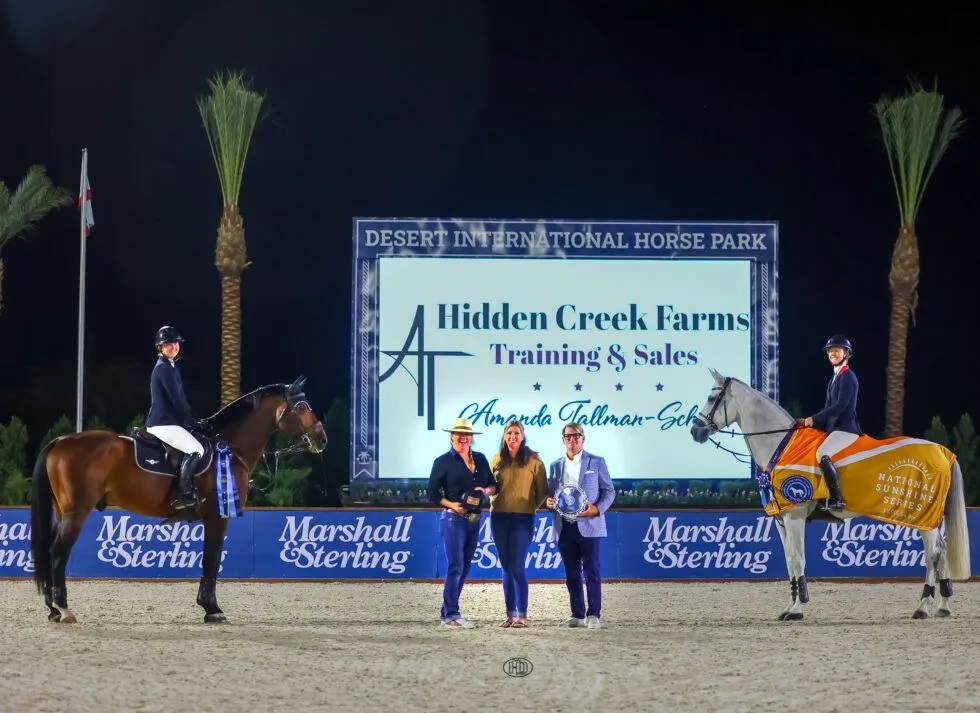 Thermal, California, USA – November 03, 2023 – The crowd watched excitedly to see if any pairs of the 15 starters could clear 1.82 meters in the final round of the $15,000 DIHP Hidden Creek Farms 6-Bar. With just five pairs making it to the final round, the task (and the final fence) seemed enormous. But two pairs didn’t let the pressure faze them. Defending champions Skylar Wireman (USA) and Karen as well as Brooke Rose Morin (USA) and NKH Carrido cleared the 1.82m fence at the end of the combination and became co-champions of the crowd favorite class during the National Sunshine Series.