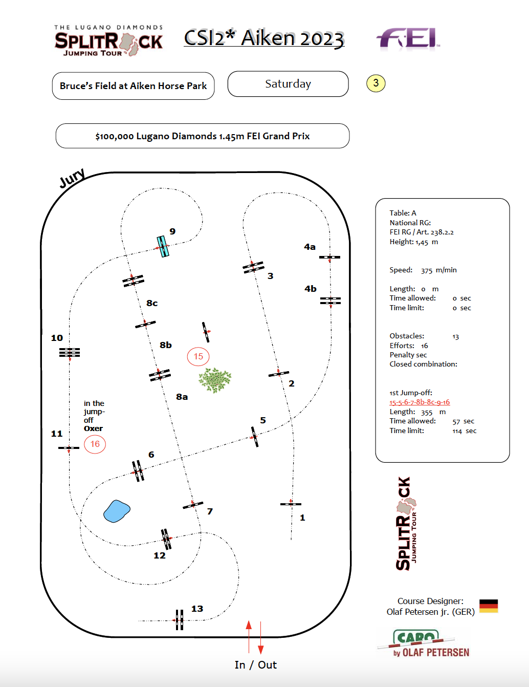 Olaf Petersen Jr.’s (GER) masterful 16-effort first round track produced 10 clears to advance into the second round of competition. Consistency was the name of the game throughout the week – with six athletes during Saturday’s event also producing clears and placings in FEI competition during the $10,000 1.40m Speed or $38,700 C. Jarvis Insurance 1.45m Welcome earlier in the week. Despite the jury electing to extend the time allowed from 76 seconds to 78, 25% of the class still produced time faults, ultimately keeping three combinations from the jump-off.