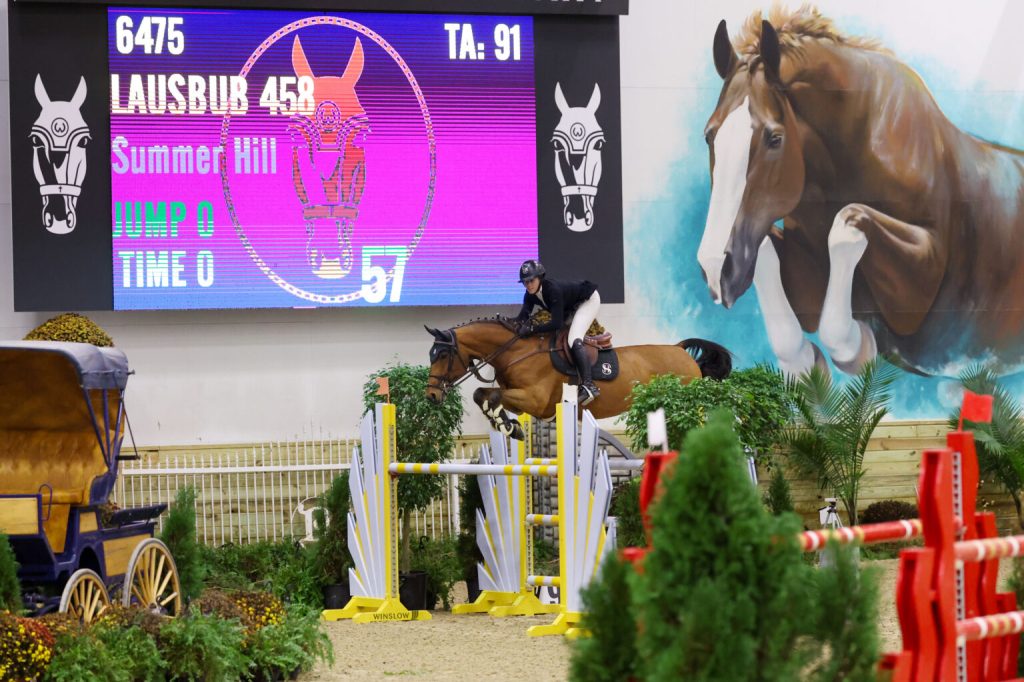 Wilmington, Ohio – November 18, 2024 – The stands of the Standlee Sanctuary were packed as exhibitors gathered to watch 22 show jumping athletes tackle Robert Barton’s (USA) track that saw seven combinations successfully move onto a nail-biting jump-off round. Summer Hill (USA) ultimately dominated the $30,000 Hagyard Equine Medical Institute Grand Prix, earning first place with her own Lausbub 458 (Lord Pizzaro x La Lolita) in 38.295 seconds, and third place with her La Belle SCF (Diktator Van De Boslandhoeve x Belle Bleu S) in 38.479 seconds.