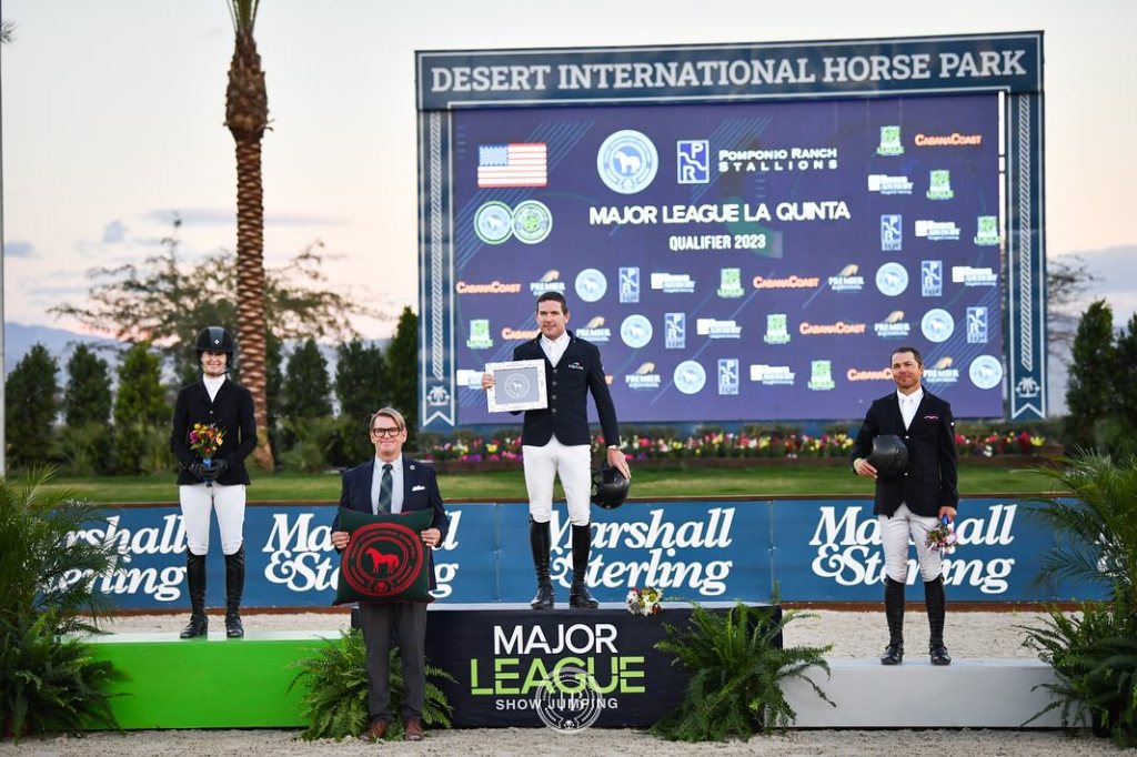 Thermal, California, USA – November 30, 2023 – Major League Show Jumping returned to the Desert International Horse Park for two weeks of championship competition and two Americans finished among the top three in the first major competition , the $76,100 CAD Pomponio Ranch CSI 5* Qualifier on Thursday there.
