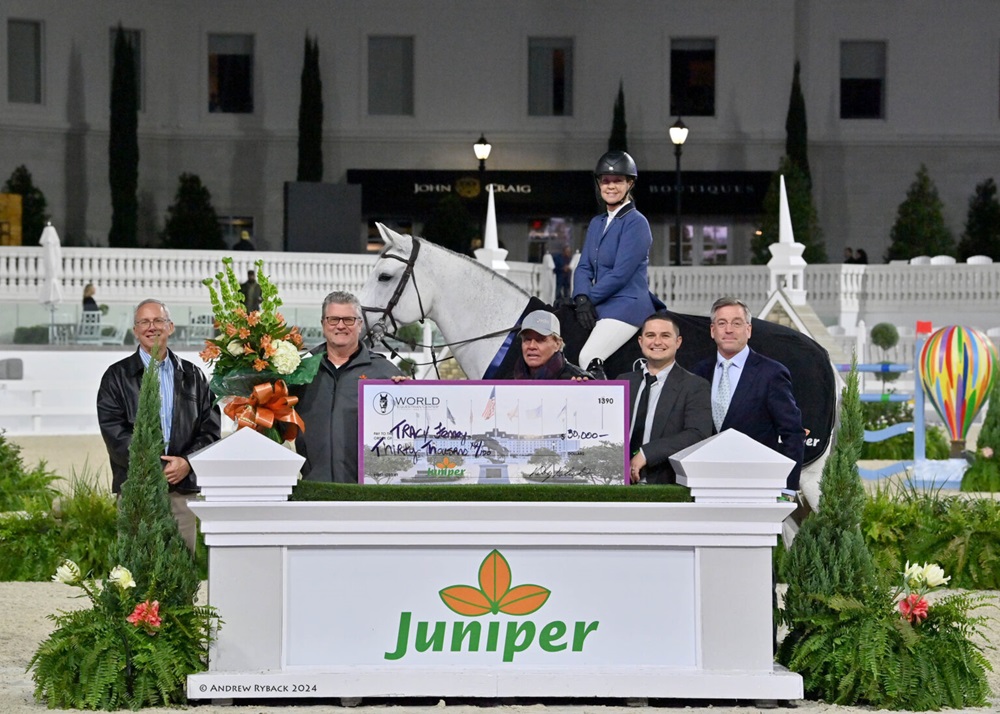 Ocala, Florida, USA – January 13, 2023 – Crowds flocked to World Equestrian Center – Ocala for the second Saturday night event during the 12-week 2024 Winter Spectacular Show Series, the $100,000 Juniper Grand Prix. Twenty-nine of the world’s best show jumping athletes vied for the top prize over a challenging track crafted by FEI Level III course designer Ben Townley (GBR). In a thrilling 11-horse jump-off, Tracy Fenney (USA) had the crowd cheering as she flew over the final fence with MTM Apple (Favorit Ask x Kong’s Whopsie).