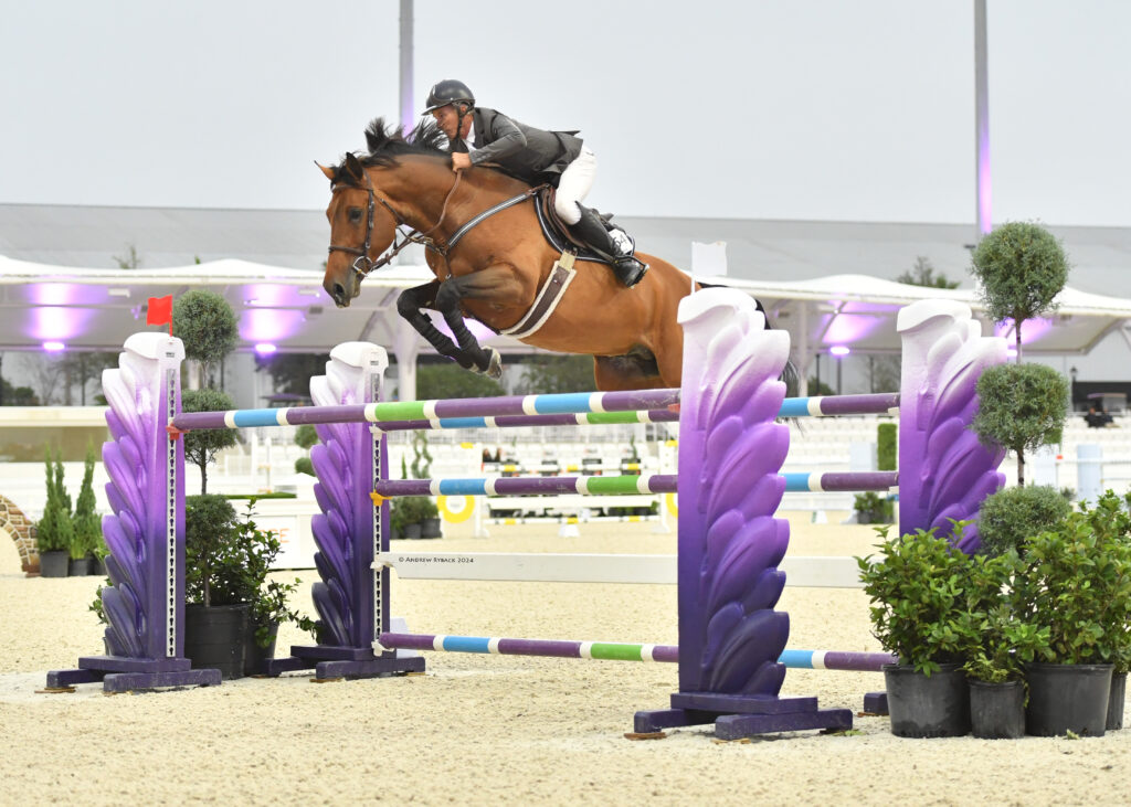 Ocala, Florida, USA – January 18, 2024 – Feature competition kicked off this afternoon with the $24,000 C. Jarvis Insurance Welcome Prix. FEI Level III course designer Anderson Lima (MEX) built the welcoming tracks for a field of top-notch competitors and Samantha Schaefer (USA) and Frasier soared to another podium finish, coming second to Luis Sabino Gonçalves and Vick Du Croisy.