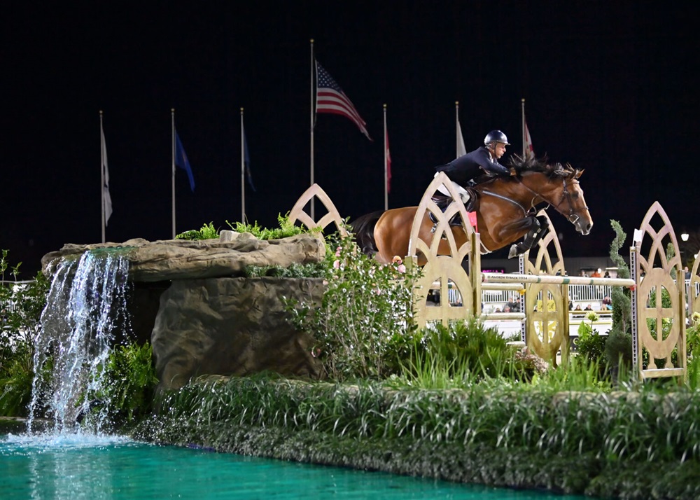 Richard Spooner (USA) was the last athlete to attempt victory. “It was his first jump-off under the lights, but he’s fast, almost cat-like, scopey, careful and every once in a while, you’ll get a horse that understands the game, and he’s one of those horses,” shared Spooner. “I just thought, angle fence one, go quick across the middle and if he feels confident after fence two, I’ll just keep the hammer down, and he stood up to the test.”