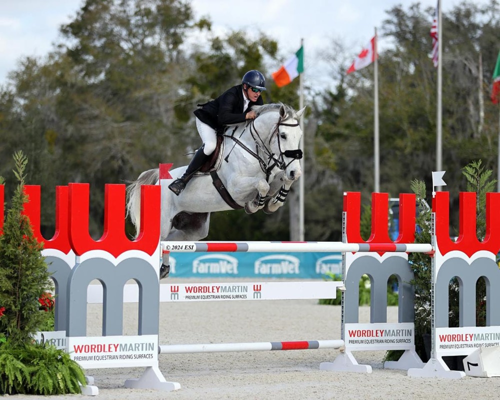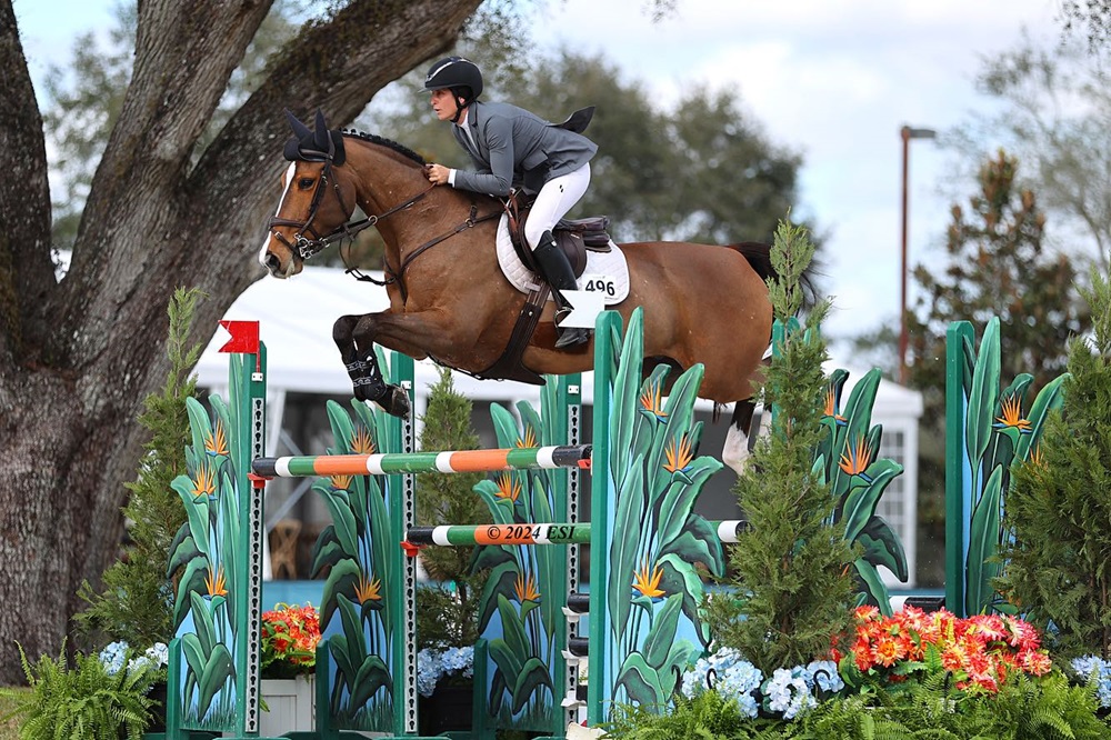 Ocala, Florida – January 25, 2024 – A full slate of competition resumed at the Hits Post Time Farm as the second week of the Hits Ocala Winter Circuit kicked off. The circuit plays host to ten weeks of top-knotch classes and riders from the most beginner to advanced levels. Featured jumper competition debuted on Thursday as 20 exhibitors sat at the ready for the $25,000 Alliant Private Client Grand Prix. After the lead changed hands several times, Dominique Damico (USA) earned the top honors aboard Amberfax Farm Inc’s 10-year-old Royal Dutch Sport Horse – Dutch Warmblood gelding (Plot Blue), Jamaica.
