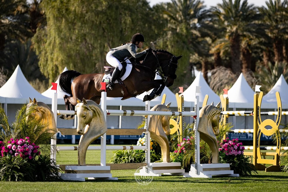 Thermal, California, USA – February 15, 2024 – Megan McDermott (USA) had a lot to smile about on Thursday of Desert Circuit VI, presented by IDA Development and Barnwalkers. She likes to smile regardless, but her heart horse, Nintendo, carried her to another big victory, this time in the $32,000 Barnwalkers Speed Challenge CSI 3* 1.50m on the grass.