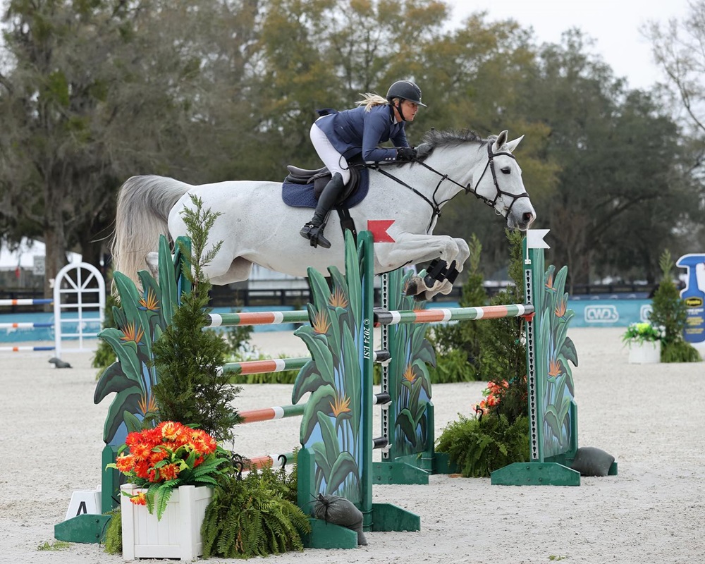 Ocala, Florida, USA – February 17, 2024 – Tracy Fenney (USA) broke the Irish winning streak on Saturday as she and MTM Apple executed a perfect jump off to overthrow Jordan Coyle (IRL) in the $75,000 Great American Insurance Grand Prix during the fifth week of the Hits Ocala Winter Circuit. The circuit runs ten weeks in length at Hits Post Time Farm with a variety of top-level hunter, jumper, and equitation events featured for both professional and amateur competitors.