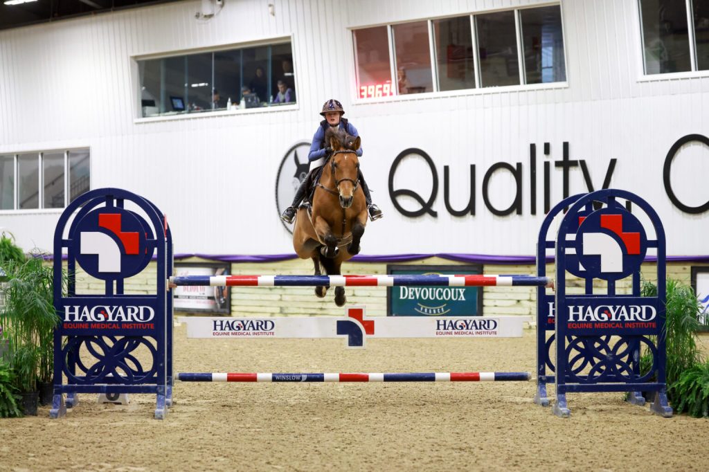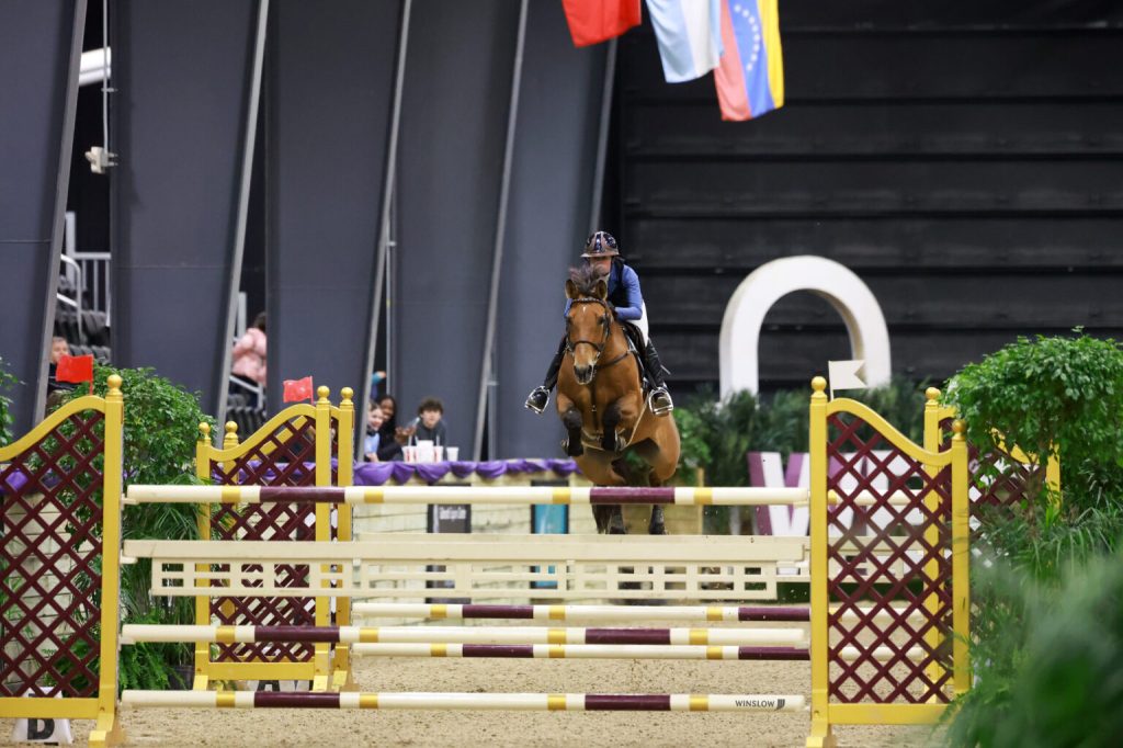 Wilmington, Ohio – February 24, 2024 – Exhibitors packed the stands of the Standlee Sanctuary as an elite group of horse-and-athlete combinations made their way around Bobby Murphy (USA) tracks. Junior rider Izzy Beisel (USA) returned with two of the four horses to make it to the jump-off phase, ultimately securing the win with Diaz Barbotiere (Messire Ardent x Quambera Barbotiere) by nearly four seconds.
