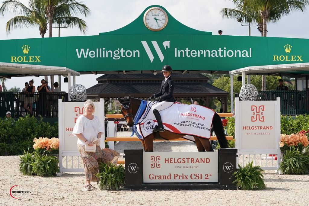 Wellington, Florida, USA – March 09, 2024 – The peak of the week’s two-star action took place on Saturday afternoon with the $62,500 Helgstrand Jewellery Grand Prix CSI 2*. Forty-five riders qualified from earlier in the week took to the Alan Wade (IRL) designed track to claim the top two-star title, with Caitlin Boyle (USA) and Navaar (Tonixe x Deauville van T&L), owned by Beyaert Farm Inc, taking it home.