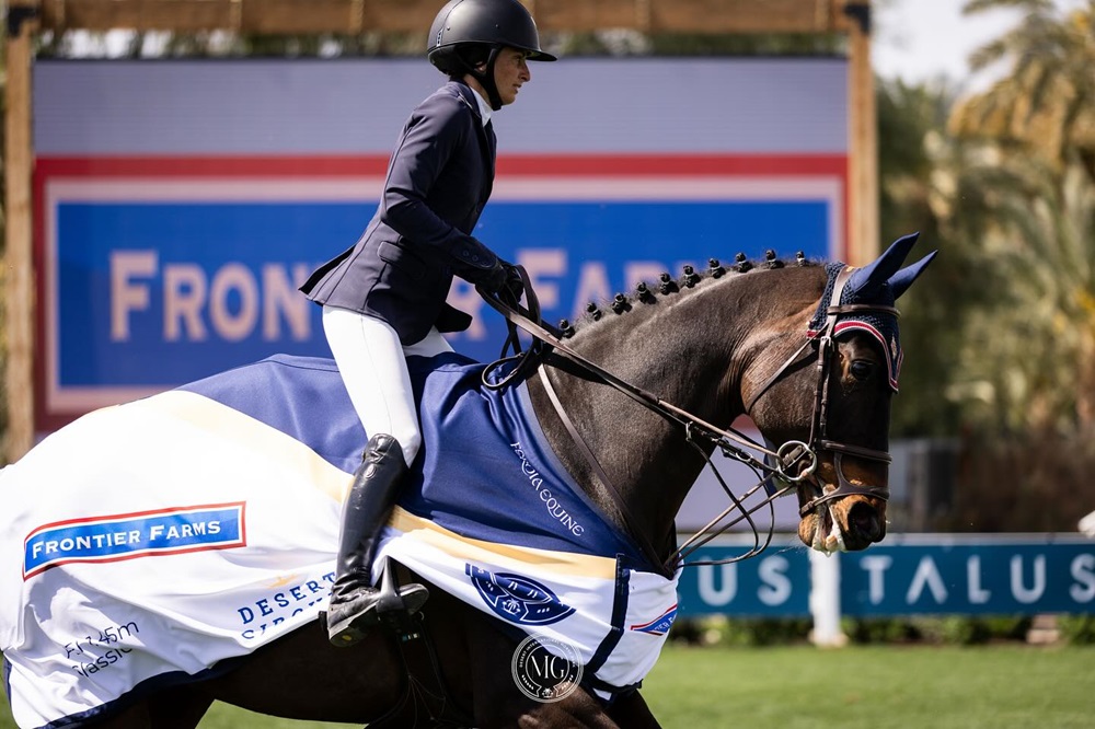 Thermal, California, USA – March 10, 2024 – Kaitlin Campbell (USA) felt that she had just had a few too many instances of an unlucky rail in top competition throughout Desert Circuit so far, but she changed her fate during Desert Circuit 9, presented by Kubota. Aboard her longtime partner Palina de L’Escaut, owned by SWS Training & Sales, Campbell flew to the win in the $32,000 Frontier Farms Classic CSI 3*, making it two FEI wins for her in one week.
