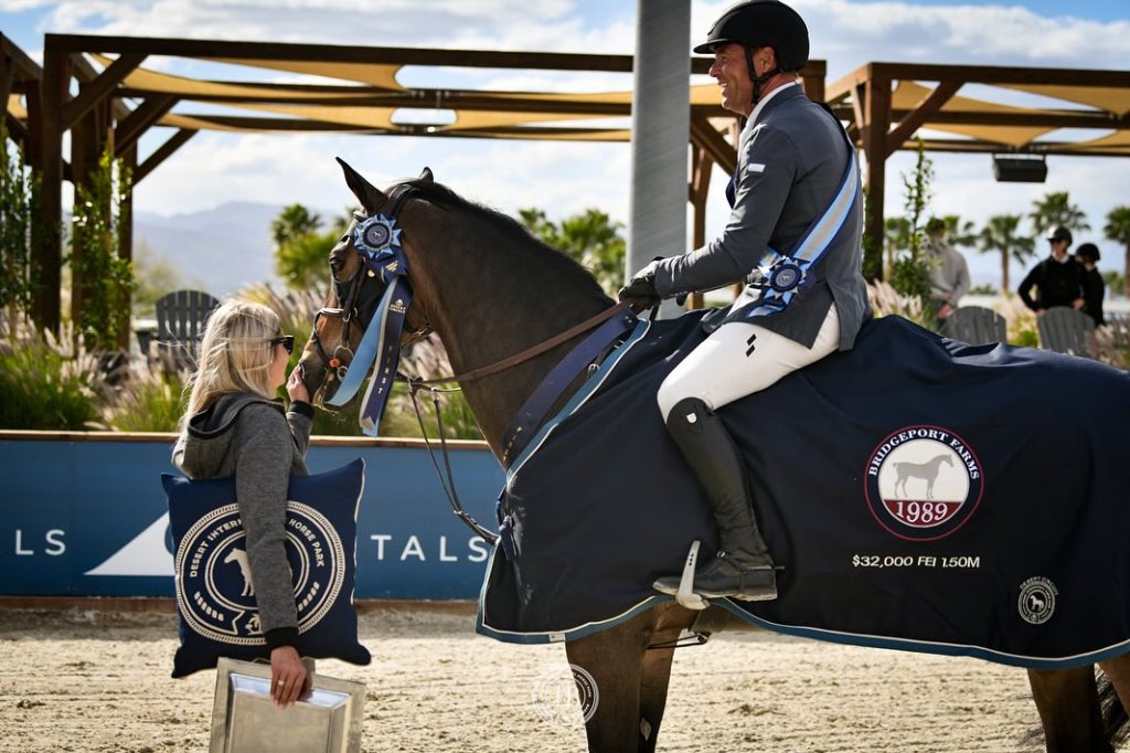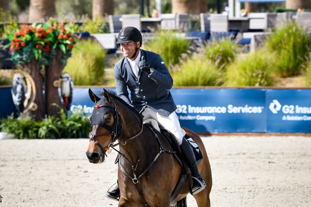 Thermal, California, USA – March 14, 2024 – Kyle King (USA) may not have had the ideal circuit, results wise, but he’s enjoyed every minute of time in the desert sun and particularly enjoyed Thursday of Desert Circuit 10, presented by La Quinta Resort & Club, when he took home the win in the $32,000 Bridgeport Farms Speed CSI 4*.