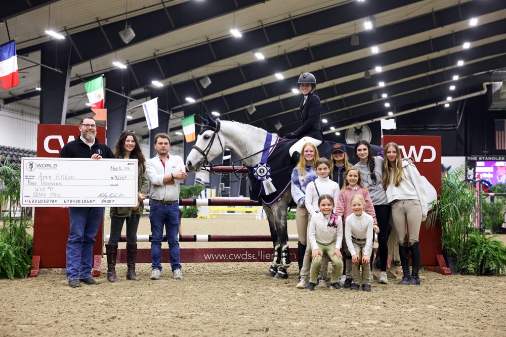 Wilmington, Ohio – March 16, 2024 –The $30,000 CWD Grand Prix was the highlight event of the evening at World Equestrian Center – Wilmington Winter Classic XIV. In the end, it was junior rider Amy Krebs (USA) who ultimately secured her third grand prix win with her own, Jabantos (Corsari Van De Helle x Cassima).