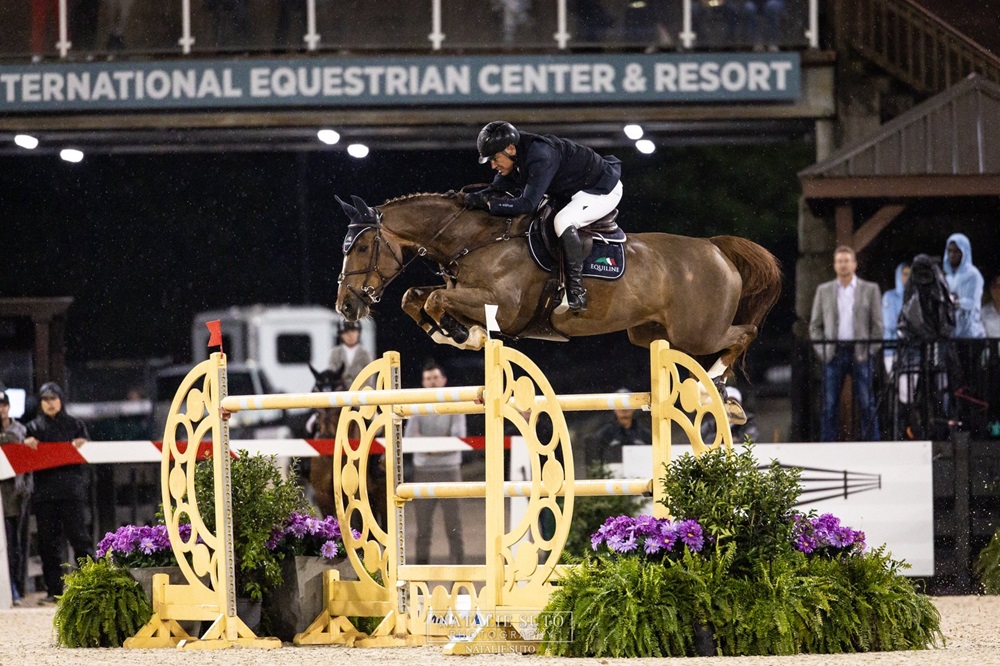 Jimmy Torano (USA) and Kochio Z set the pace for the night, being the first team out in both the preliminary round and the jump off. “I had to go first, so obviously I didn’t see anybody go [in the first round]. He did a great job as usual,” Torano complimented the course designer. “He always builds here the first week, and he really knows the field. The footing was phenomenal, and I thought my horse really responded well,” Torano said of the gelding owned by Isalou Inc & JET Show Stable.