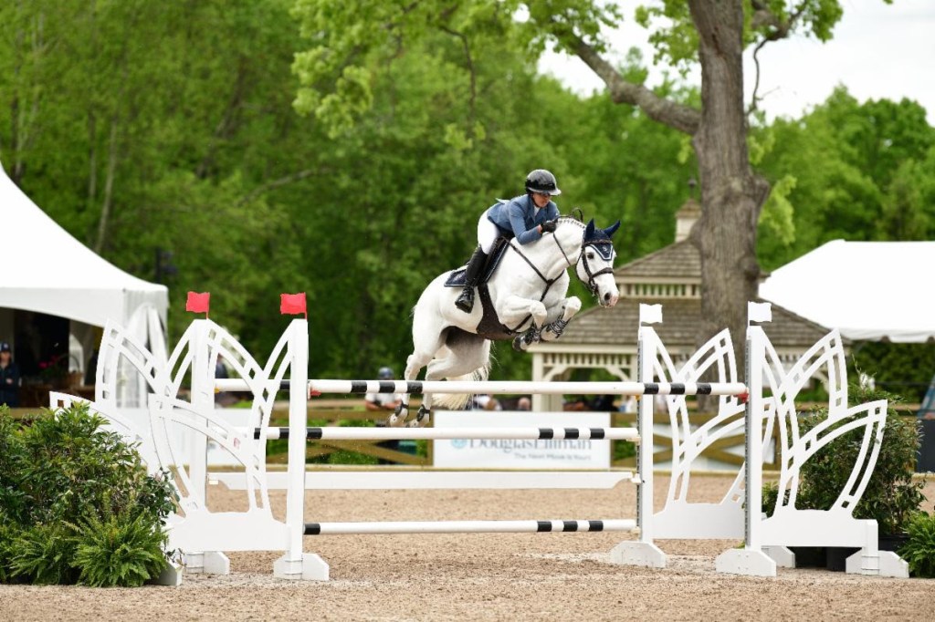 North Salem, New York, USA – May 17, 2024 – It was a busy Friday at the Old Salem Farm Spring Horse Show. Early in the day, 53 entries representing eight countries challenged Wade’s 15-effort course in the $25,000 Old Salem Farm 1.40-1.45m Jumper Classic, with 15 pairs advancing to an immediate jump-off. Nineteen-year-old Mimi Gochman (USA) set an early time to beat in the first third of the class, posting a double-clear score of 31.932 seconds aboard Gochman Sport Horse’s Gigi’s Girl BH. She and Gigi ultimately finished over a full second ahead of their fellow competitors.
