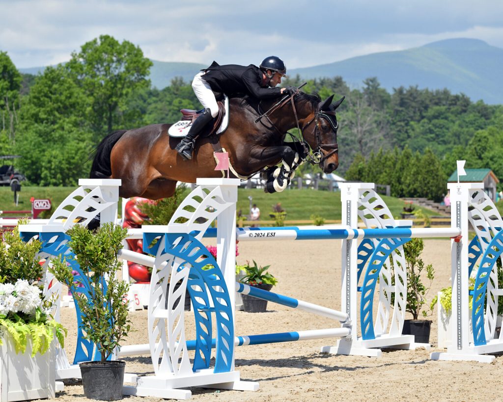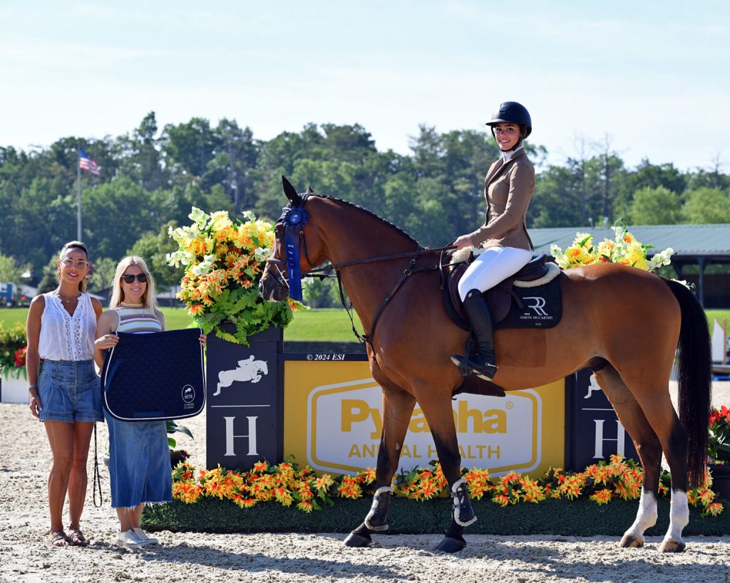 Saugerties, New York, USA – May 26, 2024 – The $24,500 Horseflight Jumper Classic on Sunday, May 26, marked the end of competition in the Hits Hudson Valley Grand Prix Stadium for the first week of the 2024 Hits-on-the-Hudson series in Saugerties, New York. From a field of 21 top athletes, Morgan Ward (USA) and Jiran R, owned by Morlynn Farm, came out on top.