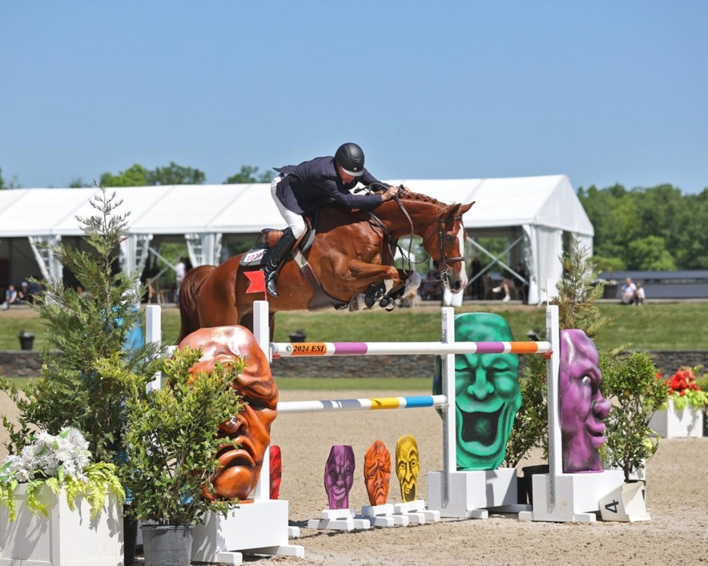 Saugerties, New York, USA – June 01, 2024 – The Douglas Elliman Grand Prix Stadium at Hits Hudson Valley in Saugerties, New York, was abuzz with excitement on the morning of Saturday, June 1, as athletes geared up to give it their all in the week’s $75,000 CWD Grand Prix. The day’s highlight event was the second in a series of weekly grands prix throughout the 2024 Hits-on-the-Hudson spring and summer circuit, but already saw many top-tier horse-and-rider combinations, including U.S. rider Megan McDermott (USA), who piloted Nintendo to the victory.