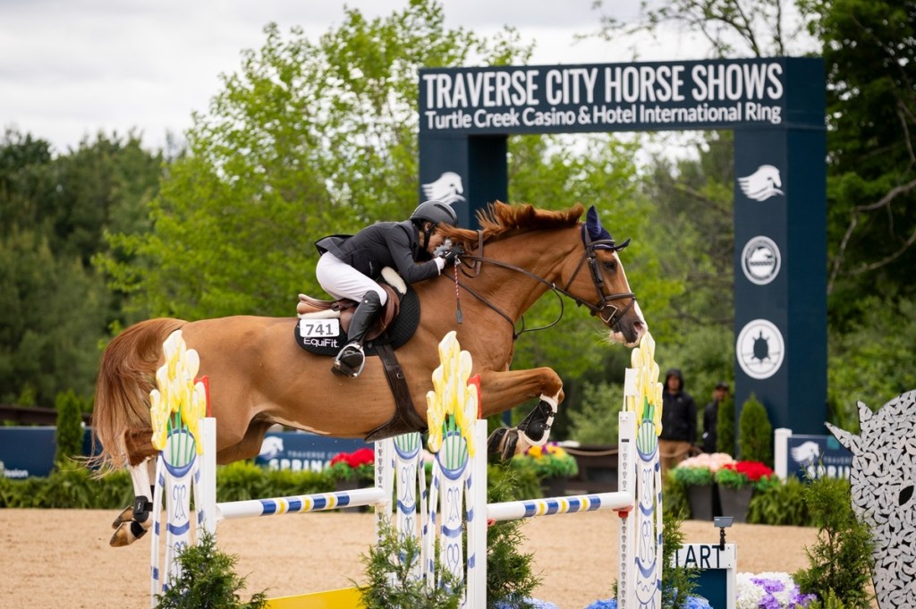 Show jumping during the opening week of competition at Traverse City Spring Horse Shows, presented by Turtle Creek Casino & Hotel will continue through the weekend, culminating with Sunday’s $120,000 Turtle Creek Casino & Hotel CSI3* Grand Prix.
