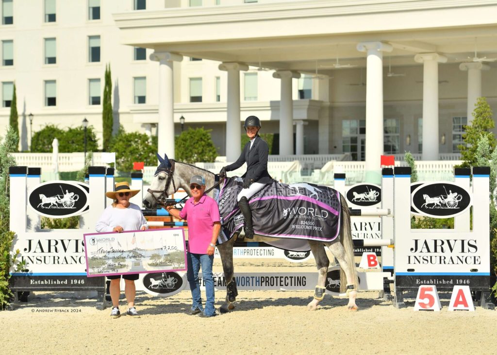 Ocala, Florida, USA –July 04, 2024 – A beautiful, sunny Florida morning set the scene for the Fourth of July and the $24,000 C. Jarvis Insurance Welcome Prix. Twenty-three horse-and-rider combinations competed over an intricate track designed by FEI Level III course designer Peter Grant (CAN), but it was Tracy Fenney (USA) and her up-and-coming eight-year-old Holsteiner mare, Can Talk To Me TD MTM (Catoki x Ocarina), who emerged victorious.
