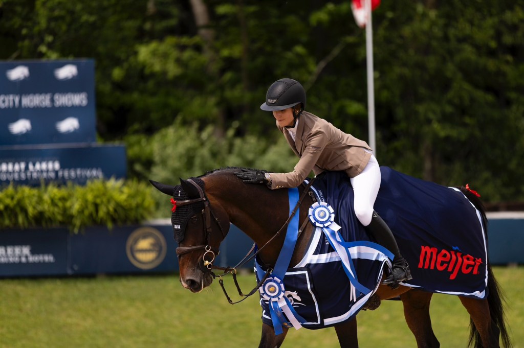 Jacobs, who was second in the Meijer Grand Prix in 2023 on Rincoola Milsean, came back for victory on her new mount. “Both horses I jumped today were nine-years-old and I’m still getting to know them,” said Jacobs of her winning mount and her second ride in the class, Instrumental. “I thought this course today was perfect for them. It rode well and you had to ride it properly.”