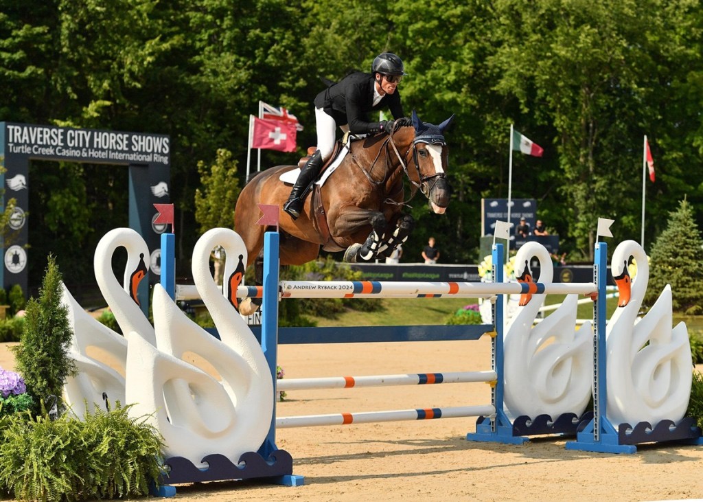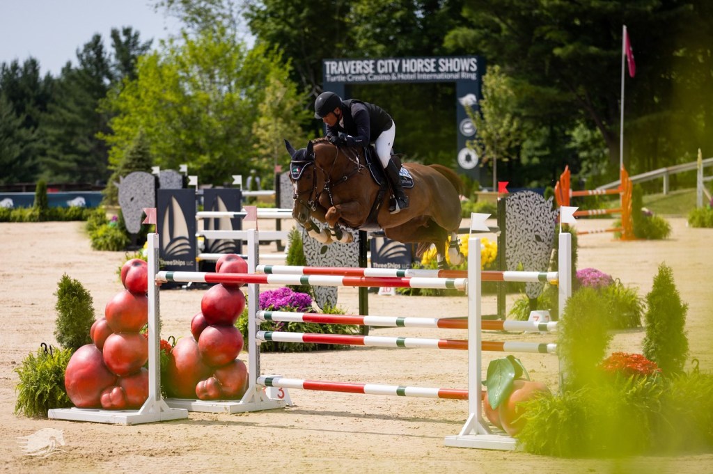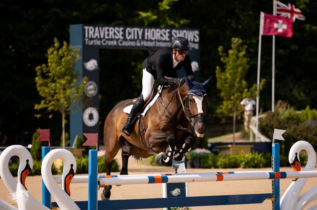 Traverse City, Michigan, USA – July 19, 2024 – Quentin Judge (USA) and HH Medarco PS started the Traverse City Horse Shows (TCHS) season with a win during opening week of the TCHS Spring Series. They returned to familiar territory on Friday when leading off the victory gallop in the $32,000 Elk Rapids Marina Welcome CSI 3* during the third week of the summer’s Great Lakes Equestrian Festival (GLEF), presented by B&D Builders, at Flintfields Horse Park.