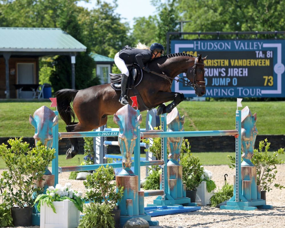 Saugerties, New York – July 26, 2024– International show jumping competition at HITS Hudson Valley in Saugerties, New York, continued on Friday, July 26, 2024, with the $40,000 Go Rentals CSI3* Winning Round. The action-packed HITS-on-the-Hudson V event is the second of three sold-out weeks comprising the Hudson Valley Jumping Tour® Series. After a win in Thursday’s opening $31,020 CSI3* Jumper Classic, Kristen Vanderveen (USA) picked up her second victory in as many days to once again lead the victory gallop, this time aboard Bull Run’s Jireh.