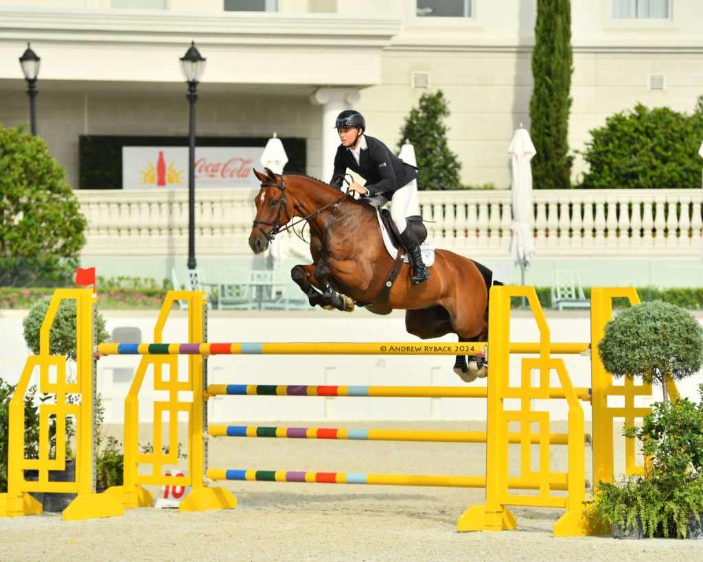 Simpson spoke about his partnership with the nine-year-old Dutch Warmblood (KWPN) gelding, “I started him about a year and a half ago, beginning in the 1.20m and working up from there. We got him from Elysian Stables in Miami, and they had a lot of junior and amateur jumpers, but he didn’t fit into that model. So, we did some horse trading which worked out for everyone. He has all the heart in the world, which I think is the most important thing to have in this sport.”