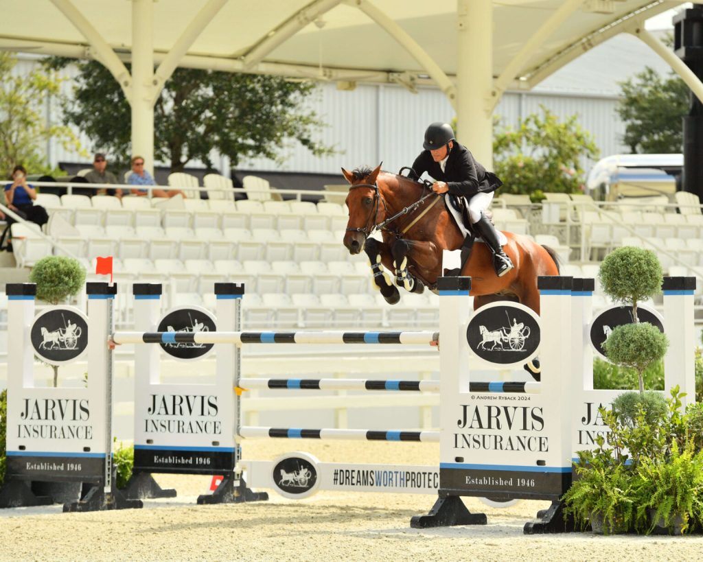 Ocala, Florida, USA – July 25, 2024 – A strong field of horse-and-rider combinations competed in the WEC Grand Arena this morning, aiming for top honors in the $24,000 C. Jarvis Insurance Welcome Prix. FEI Level IV course designer Steve Stephens (USA) crafted a challenging track, but it was Olympic Gold Medalist Will Simpson (USA) and Keminko N (Grand Slam VDL x Deminka N) who found the path to success.