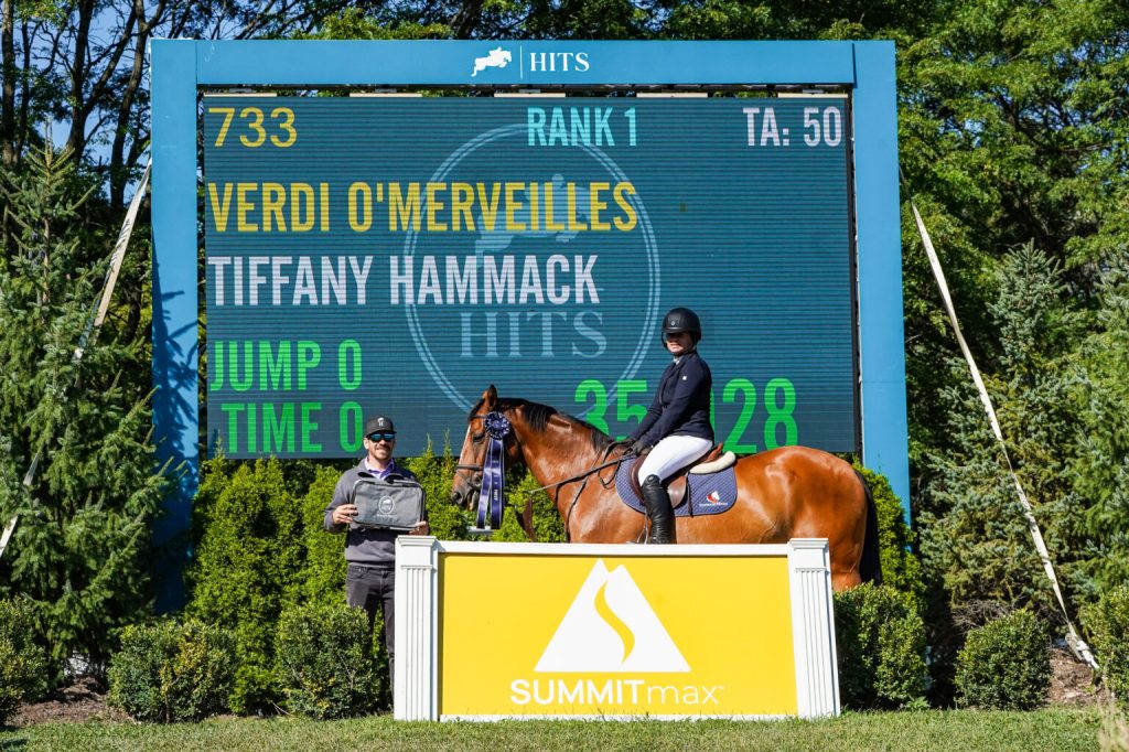 Wayne, Illinois – August 10, 2024 – In a thrilling conclusion to the Hits Chicago Equifest III Series, Tiffany Hammack (USA) of Rockton, Illinois, and her seasoned partner, Verdi O’Merveilles, claimed victory in the $35,000 SummitMax Grand Prix on Saturday, August 10, 2024. Twenty-three elite horse-and-rider combinations contested the technical first-round track. In the middle of the starting order, Hammack guided Verdi O’Merveilles to a fault-free effort , joining 11 other riders in the jump-off.