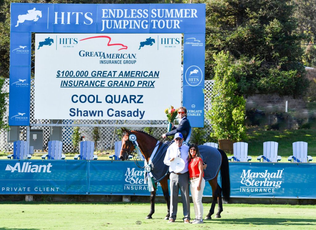 Del Mar, California, USA – August 24, 2024 – The competition during the penultimate day of the Del Mar Summer Classic I concluded with an exciting showdown in the $100,000 Great American Insurance Group Grand Prix CSI 2*. The event was the finale of international two-star action during the week and welcomed athletes from eight nations, including the United States, Argentina, Canada, Colombia, Brazil, Ireland, Mexico, and Sweden. After a nail-biting jump off, the USA’s Shawn Casady (USA emerged victorious with Morning Star Sporthorses Cool Quarz.