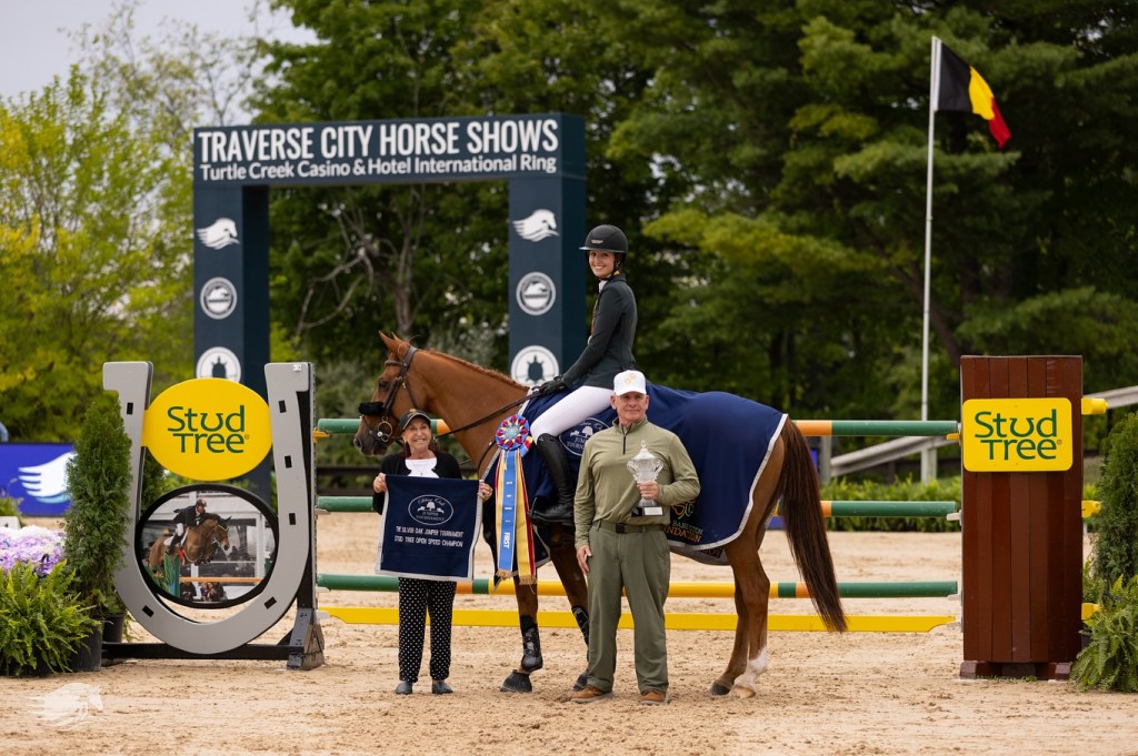 Traverse City, Michigan, USA – September 05, 2024 – The first international competition of the 2024 Silver Oak Jumper Tournament took center stage in the Turtle Creek Casino & Hotel International Ring on Thursday. The event marked the kickoff of a highly anticipated three weeks at the 2024 Tournament of Champions in Traverse City. Well-rested after several weeks off and ready to challenge, the week’s first FEI win went to Charlotte Jacobs (USA) aboard Rincoola Milsean in the $32,000 Stud Tree Two-Phase CSI 3*.