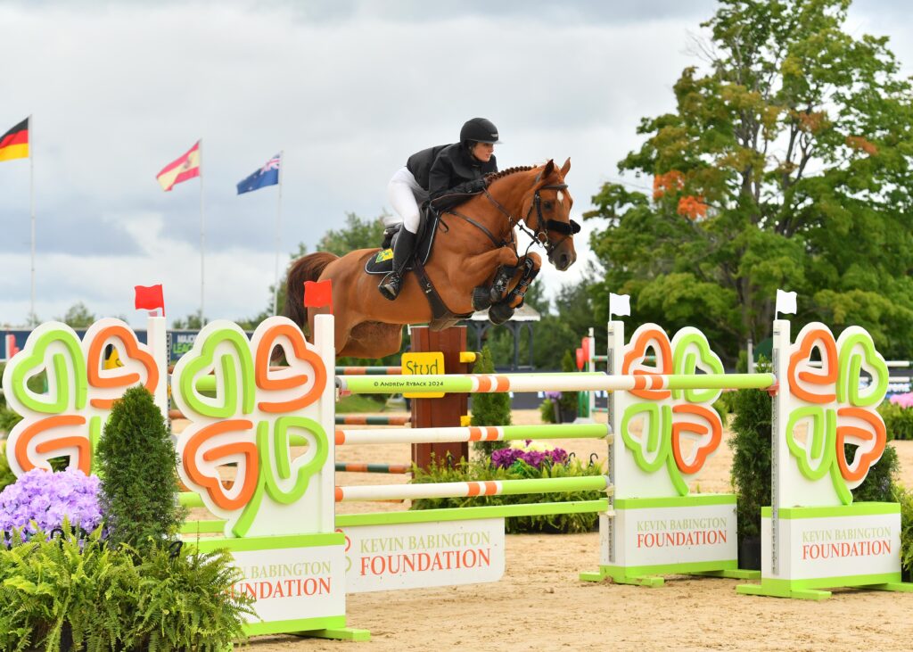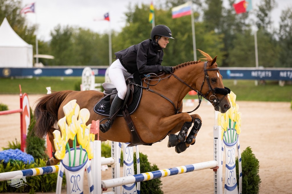 Traverse City, Michigan, USA – September 06, 2024 – There was a bit of déjà vu at Flintfields Horse Park on Friday as Charlotte Jacobs (USA) and Rincoola Milsean (Aldatus Z x Cruising), owned by North Star, won their second international competition in as many days during the Silver Oak Jumper Tournament as part of opening week at the Traverse City Tournament of Champions. The duo topped the $32,000 GGT Footing Welcome CSI 3* from a field of 36, ultimately claiming the tricolor and earning a spot in Sunday’s grand prix.