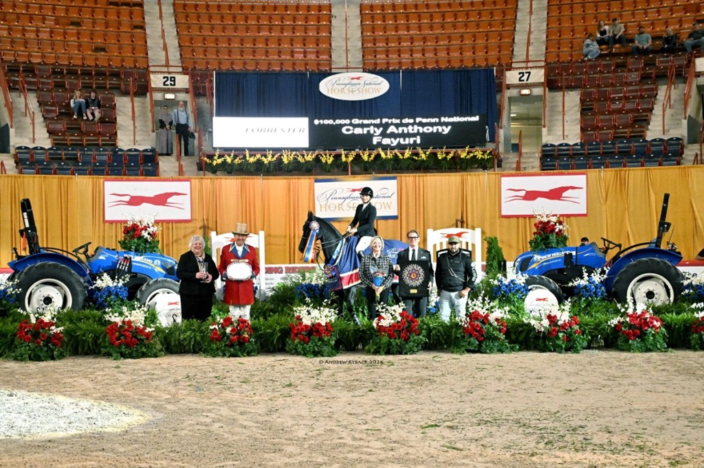 Harrisburg, Pennsylvania – October 19, 2024 – The $100,000 Grand Prix de Penn National, presented by Forrester Farm Equipment, came down to a thrilling race against the clock before Carly Anthony (USA) and Fayuri flew away with the win in an exciting conclusion to open jumper competition at the 78th annual Pennsylvania National Horse Show in Harrisburg, PA.