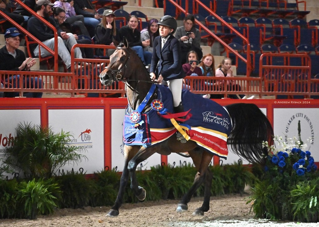 “This is my first year coming here,” said Bagnato, who traveled to the PNHS from her home base in Fishkill, NY. “I think it’s a great show. Last year was my first year doing indoors, so it’s a little bit different for me. I’m used to riding in an outdoor, but I think that everything’s very accommodating. Everything so far has been lovely. One memory that I’m going to take away from here is definitely winning this class!”