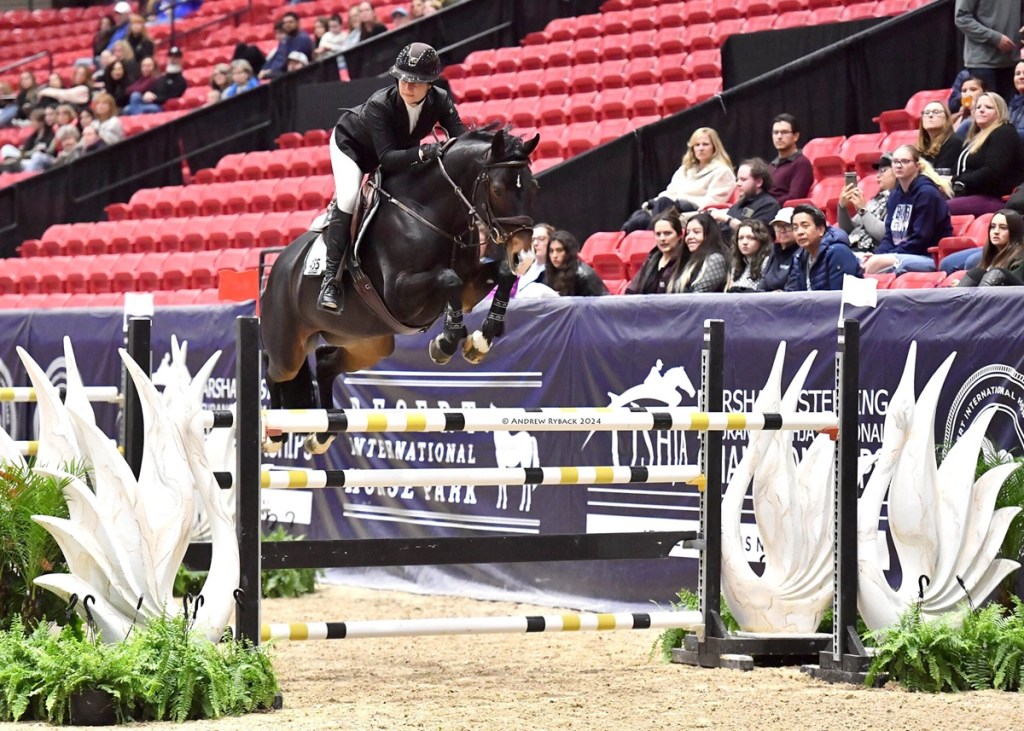 Las Vegas, Nevada, USA – November 15, 2024 – Course designer Anderson Lima (BRA) set a galloping jump-off track for Friday night’s $49,999 1.40m Grand Prix, sponsored by Barnwalkers and IDA Development, and by the end of night, it proved to be perfectly suited to Kasey Ament (USA) and Gaia. The pair blazed across the finish to take home the win in the featured 1.40m event of the 2024 Las Vegas National Horse Show at the South Point Hotel, Casino & Spa in Las Vegas, NV.