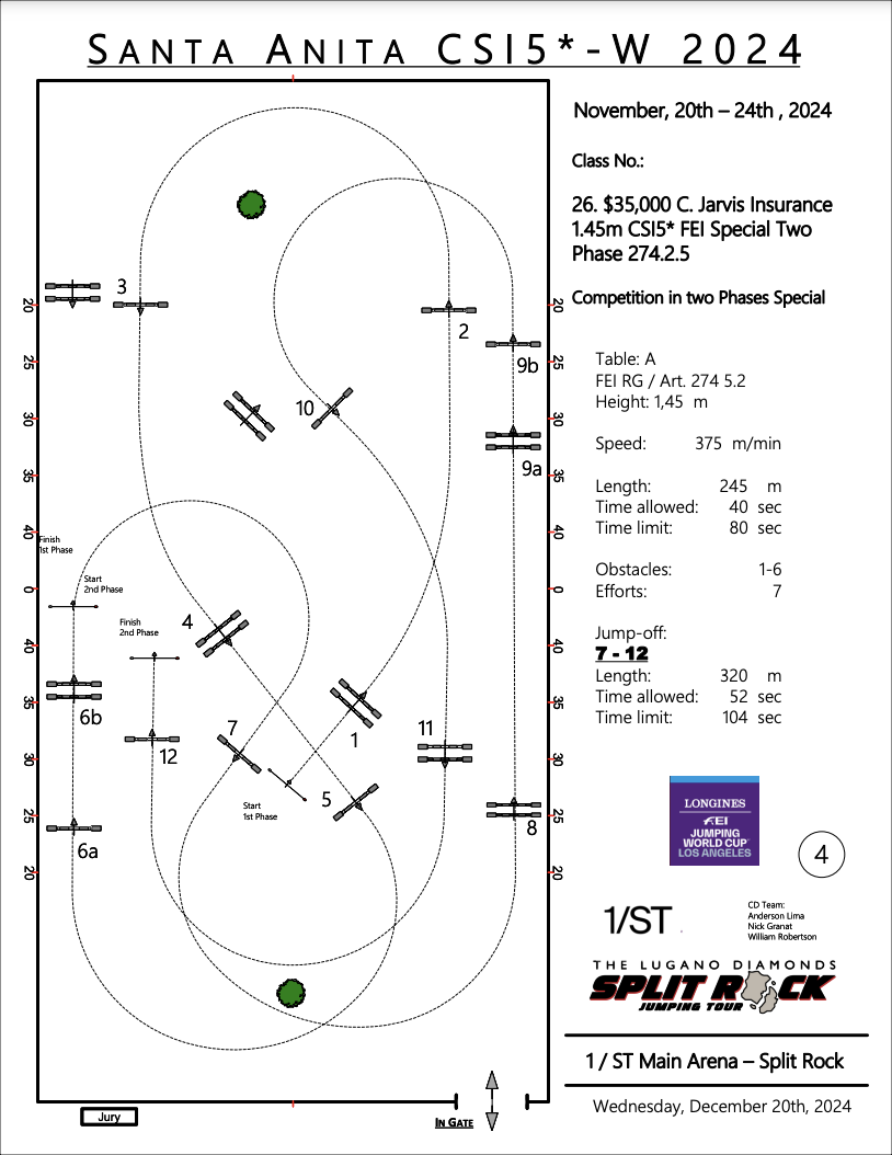 Arcadia, California, USA – November 20, 2024 – Olympic athletes returned to Santa Anita Park for a whole new experience since the venue last hosted showjumping at the 1984 Games, as the Lugano Diamonds Split Rock Jumping Tour (SRJT) set the stage for the inaugural Santa Anita CSI 5*-W in partnership with 1/ST. The week welcomed a star-studded lineup of top athletes and horses with Wednesday, opening FEI competition with the $35,000 C. Jarvis Insurance Two Phase CSI 5*.