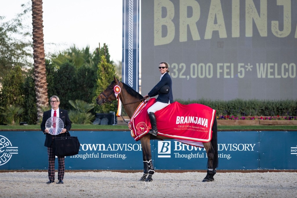 Thermal, California, USA – December 12, 2024 – The second, and finale, week of Major League Show Jumping competition at the Desert International Horse Park is off and running, and on December 12, it was Shawn Casady (USA) and Cool Quarz who were running the fastest. They sped to victory in the $32,000 MLSJ BrainJava Welcome Speed CSI 5* as FEI competition got underway at Desert Holiday II.