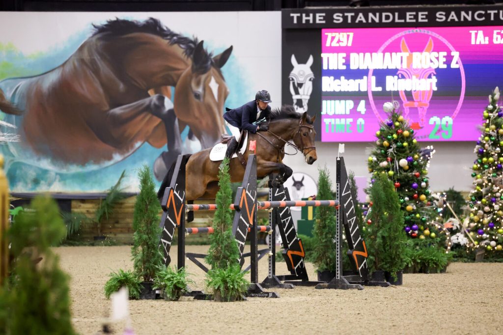 Richard Rinehart and the 13-year-old Zangersheide mare, The Diamant Rose Z (Toulon x Diamant Z), rounded out the top three with the quickest time of 35.502 seconds and an unfortunate four faults.
