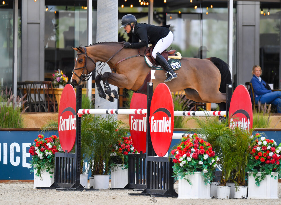 Thermal, California, USA – January 16, 2025 – An international field of riders representing the United States, Canda, Ireland, Mexico, Japan entered the main ring Desert International Horse Park on Thursday for the $30,000 FarmVet 1.45m Open Classic and the host nation did not disappoint. Finishing in second place was Michelle Parker (USA) , who held the lead for much of the class with a time of 62.326 seconds aboard Vivalunaika Blue, owned by Cross Creek Farms, Inc.