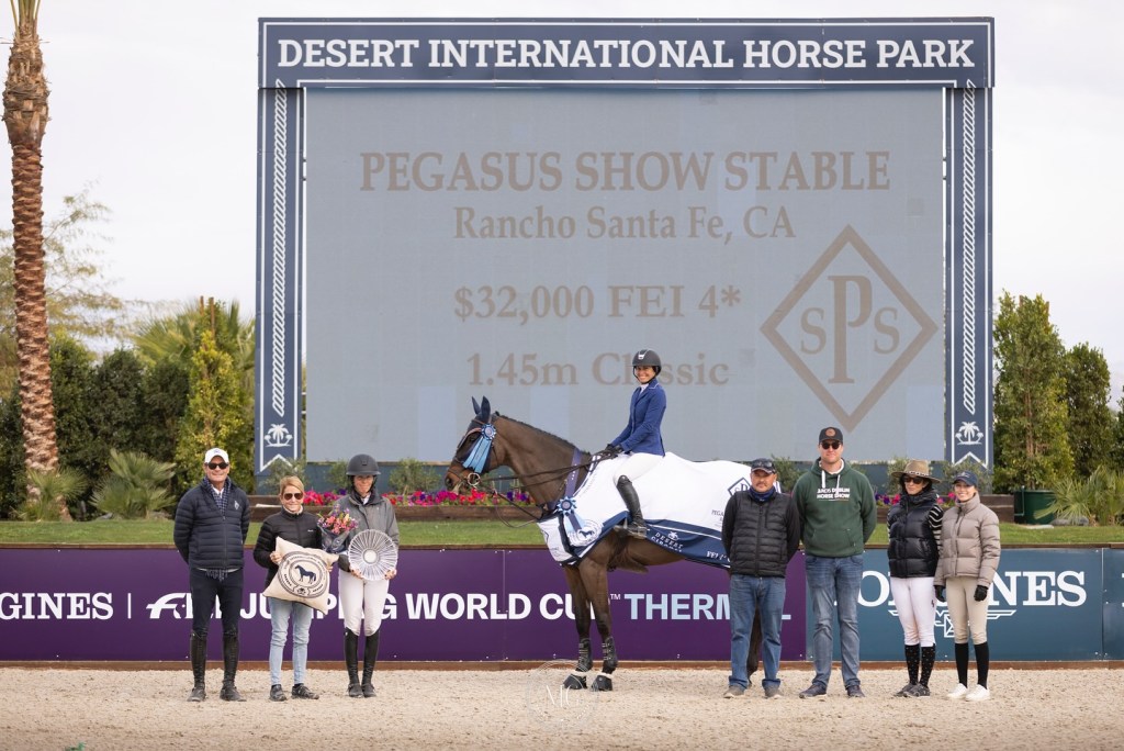 Thermal, California, USA – January 26, 2025 – After six years together, Kaitlin Campbell (USA) only brings out Palina de L’escaut for classes she knows the mare is likely to excel at, and this week, that included the $32,000 Pegasus Show Stables Classic CSI 4* – 1.45m. With a lightning-fast round, Campbell and Palina de L’Escaut topped a seven-horse jump-off to take home the win in the Sunday afternoon featured class at Desert Circuit 3.