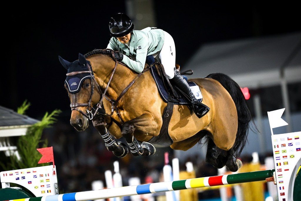 For the second ‘Saturday Night Lights’ in a row, German Olympic Champion Christian Kukuk (GER) led off with his Paris 2024 partner Checker 47. They set a standard that remained at the top until Farrington returned to challenge.