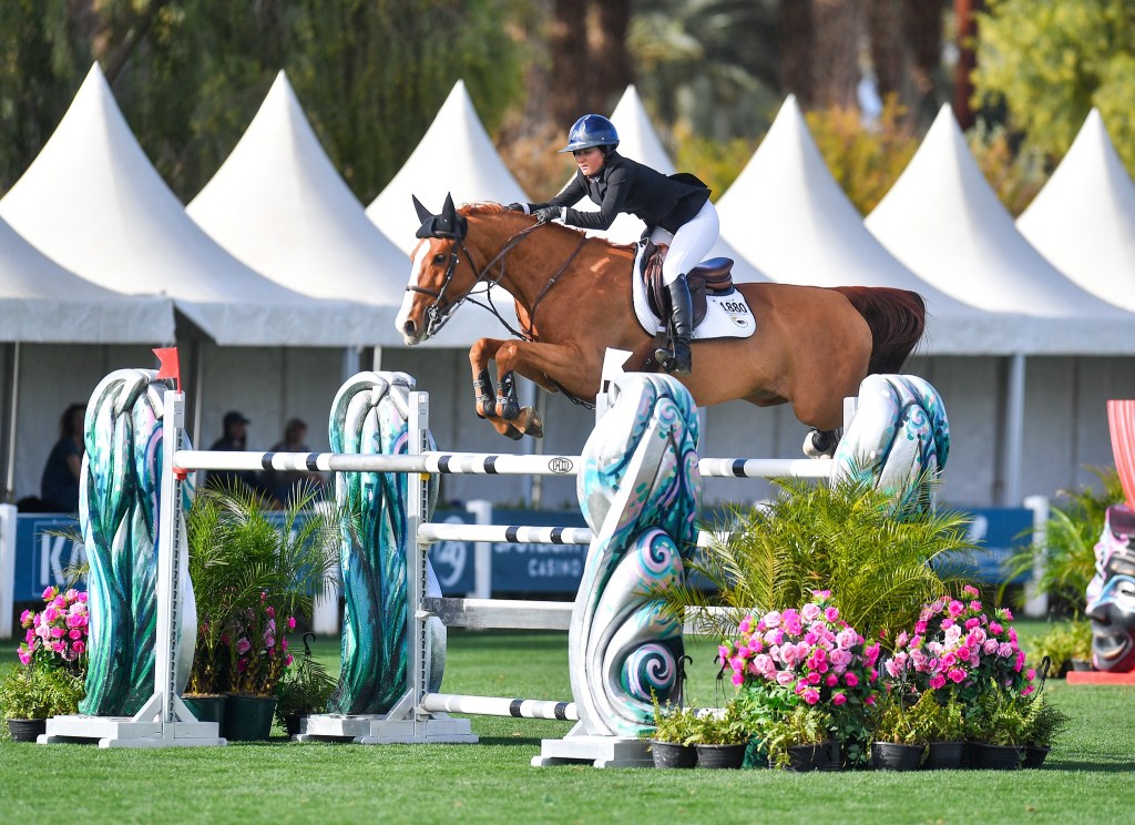 Thermal, California, USA – February 9, 2025 – After already topping Wednesday’s $10,000 Barnwalkers Welcome Speed, Amanda Gomez (USA) and Charly-Ann returned to the Desert International Horse Park’s Grass Field on Sunday, February 9 to do it again. This time, they rode away with victory in the $30,000 Marshall + Sterling Insurance Open Classic – 1.40m.