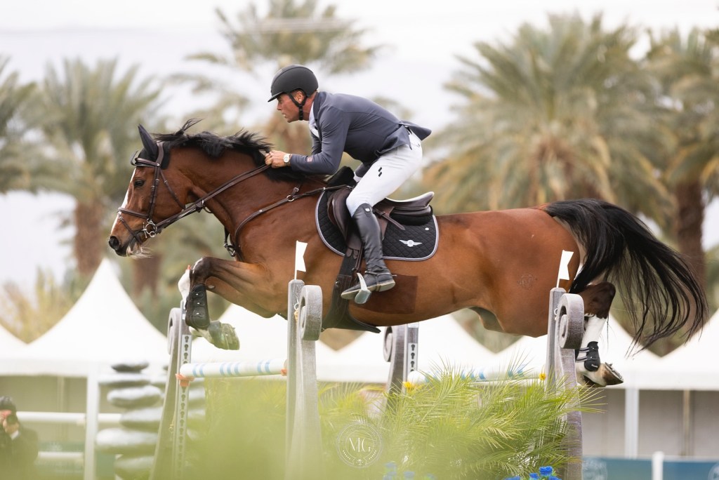 Thermal, California, USA – February 13, 2025 – Kyle King (USA) kicked off his birthday celebrations one day early with a win aboard Ezio de Emeraud in the $32,000 BrainJuice Welcome Speed CSI 3* on Thursday, February 13, at Desert Circuit 6, presented by Premier Equestrian.