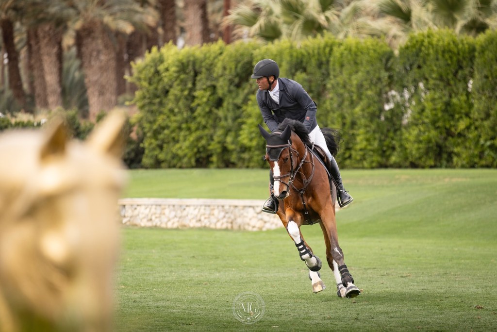 A field of 30 entries took on the speed track, set on the Desert International Horse Park’s Grass Field and designed by Ireland’s Colm Quinn. Of those entries, King and Ezio de Emeraud were the 22nd pair to jump, and when they took to the field, Irish riders sat in all three of the top spots. Heading the leaderboard with a time of 69.28 seconds were David O’Brien (IRL) and El Balou Old – a duo that had held the lead for much of the class.